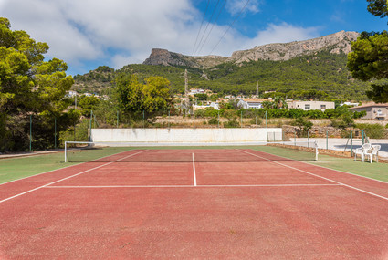 EXTERIOR: In the large plot of 11,000 m2, we find a large rectangular pool of 10x4.5m with Roman stairs and outdoor shower. Additionally, the villa has a solarium where you can enjoy beautiful views, as well as a tennis court for the delight of sports enthusiasts. It is possible to park 6 vehicles within the plot.