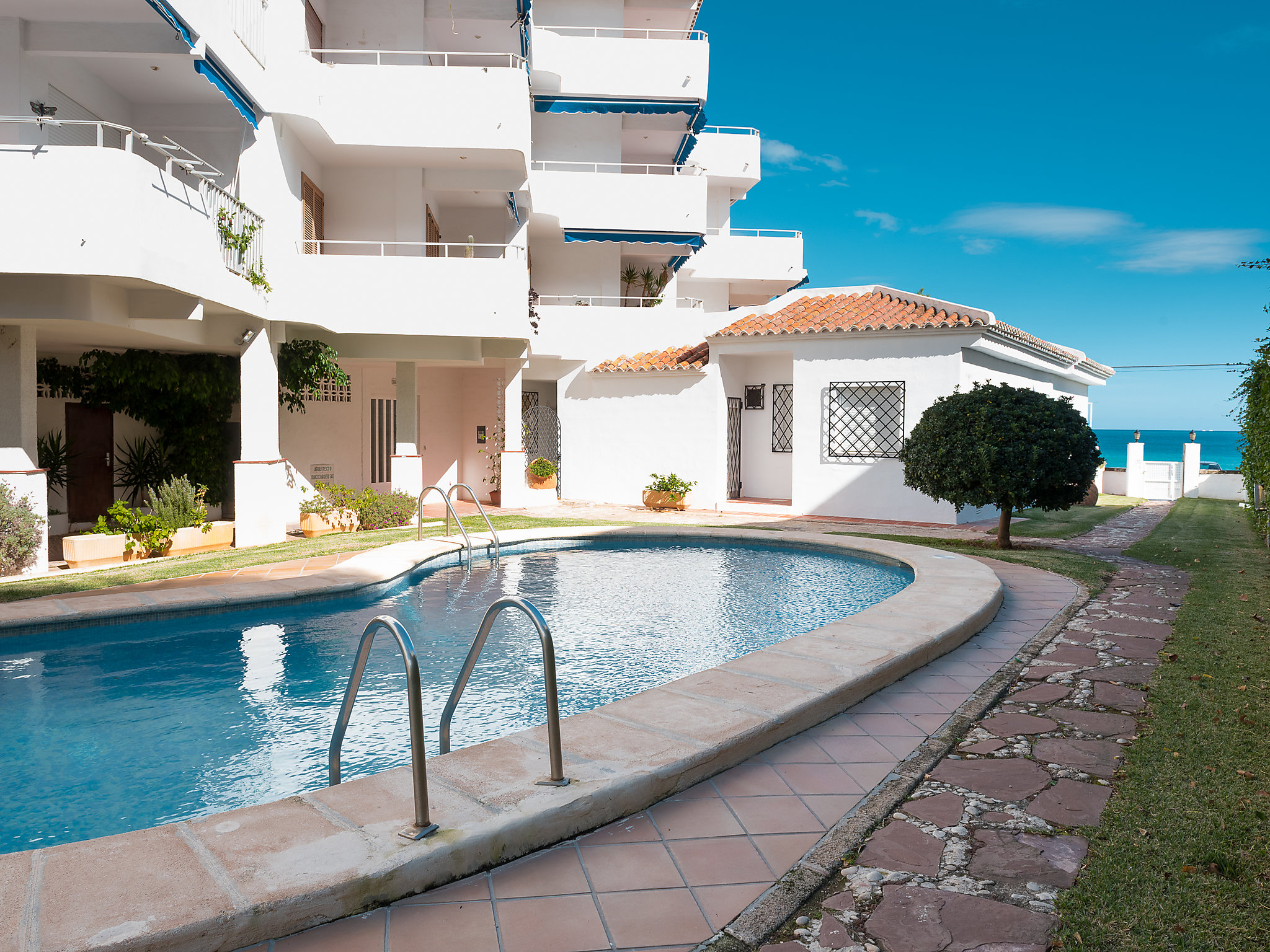 Old apartment block "Inocencia", 4 storeys. In the district of Montañar I, in a central position, 50 m from the sea, road to cross. For shared use: garden (fenced) with lawn and plants, swimming pool (01.01.-31.12.). Outdoor shower, public parking on the road. Shop, supermarket 500 m, restaurant 100 m, sandy beach 1.5 km, shingle beach 50 m. Sports harbour 1 km. Please note: no lift.