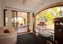 - air-conditioned bedroom with king size bed, television and ceiling fans