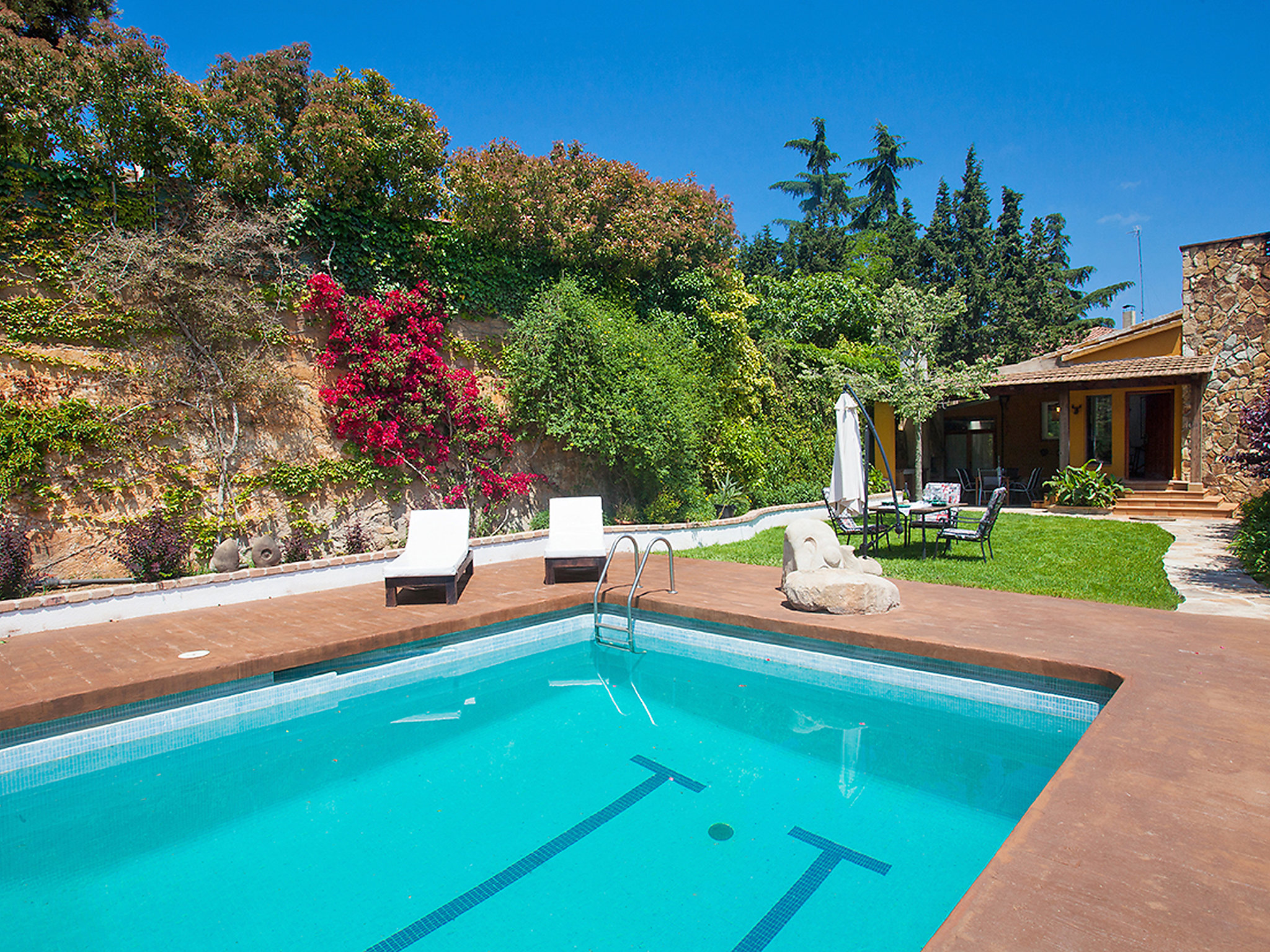Beautiful, cosy apartment block "Casa de la Font del Ferro". Outside the resort, 2 km from the centre of Argentona, on a slope, residential area (villas), 200 m from the edge of the forest, 7 km from the sea, 7 km from the beach. Private: property (fenced), swimming pool (10 x 5 m, depth 100 - 200 cm, 26.03.-30.10.). Outdoor shower. In the house: washing machine (for shared use). Public parking on the road. Supermarket 2 km, restaurant 2 km, bar 2 km, railway station "Vilassar de Mar" 9 km, sandy beach "Cabrera de Mar-Vilassar de Mar" 9 km. Nearby attractions: Barcelona 28 km, La Roca Village 12 km, Costa Brava 50 km, Parque Aquàtic 8 km, Serralada Litoral 500 m. Please note: car recommended. Suitable for families. Groups of teenagers on request only. Neighbourhood highly sensitive to noise. Quietness and good behaviour expected.Disponibilitat