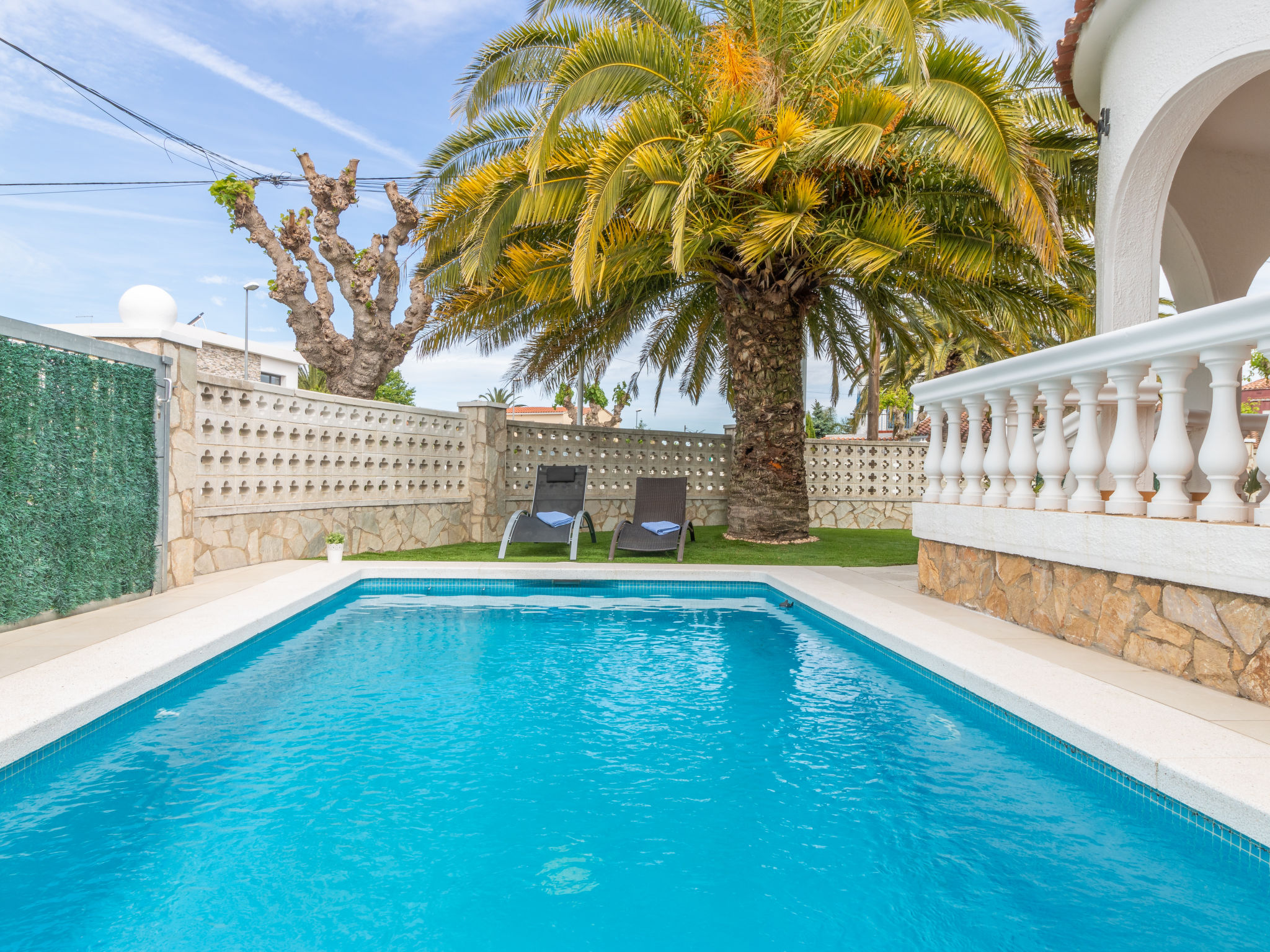 Beautiful, cosy house "Green House", renovated. In the district of Carmençó 200 m from the centre of Empuriabrava, in a sunny position residential area (villas), excellent location: right in the centre but still quiet, traffic calmed area, 800 m from the sea. Private: beautiful, well-kept garden with lawn and trees, swimming pool angular (3 x 7 m, seasonal availability: 01.May. - 30.Sep.). Patio, pergola, garden furniture, barbecue. In the house: washing machine. Parking on the premises. Shop 400 m, grocery 400 m, supermarket, shopping centre 300 m, restaurant 300 m, bar, bus stop 2.8 km, sandy beach "Empuriabrava" 800 m. Sports harbour 850 m, golf course (18 hole) 15 km, surf school, sailing school 800 m, tennis 2 km, minigolf 100 m, riding stable 2 km, walking paths from the house, cycle lane 300 m. Nearby attractions: Centro paracaídismo y túnel del viento 2 km, Parque Acuático Aquabrava Roses 6 km, Museo Dalí Figueres 15 km, Casino y festival de Perelada 12 km, Ruïnas de St. Martí de Empúries 21 km, Monasterio de Sant Pere de Rodes 23 km. The keys‘ handover takes place by the agency Interhome in Empuriabrava.Disponibilitat